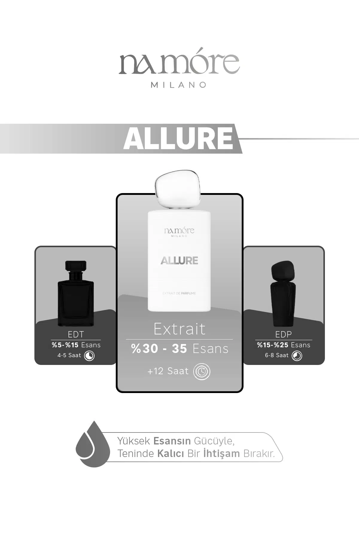 Allure Extrait; mandalina’nın ferahlığı, sümbülteber’in çiçeksi - sofistike havası ve vanilya’nın sıcak tatlılığı ile hem kadın hem erkek kullanıcıya hitap eden çok yönlü ve zarif bir koku deneyimi sunar. 50 ml’lik kompakt boyu ile gündelik hayattan özel akşam davetlerine kadar her an yanınızda.