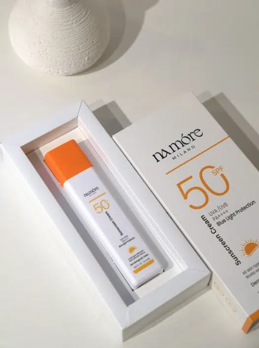 Na Moré Milano SPF 50 Sunscreen Cream, gelişmiş formülüyle UVA / UVB ışınlarına ve dijital ekranlardan yayılan mavi ışığa karşı güçlü bir koruma sağlar. Hafif yapısı sayesinde ciltte beyaz kalıntı bırakmadan kolayca emilir, gün boyu konforlu bir koruma sunar.