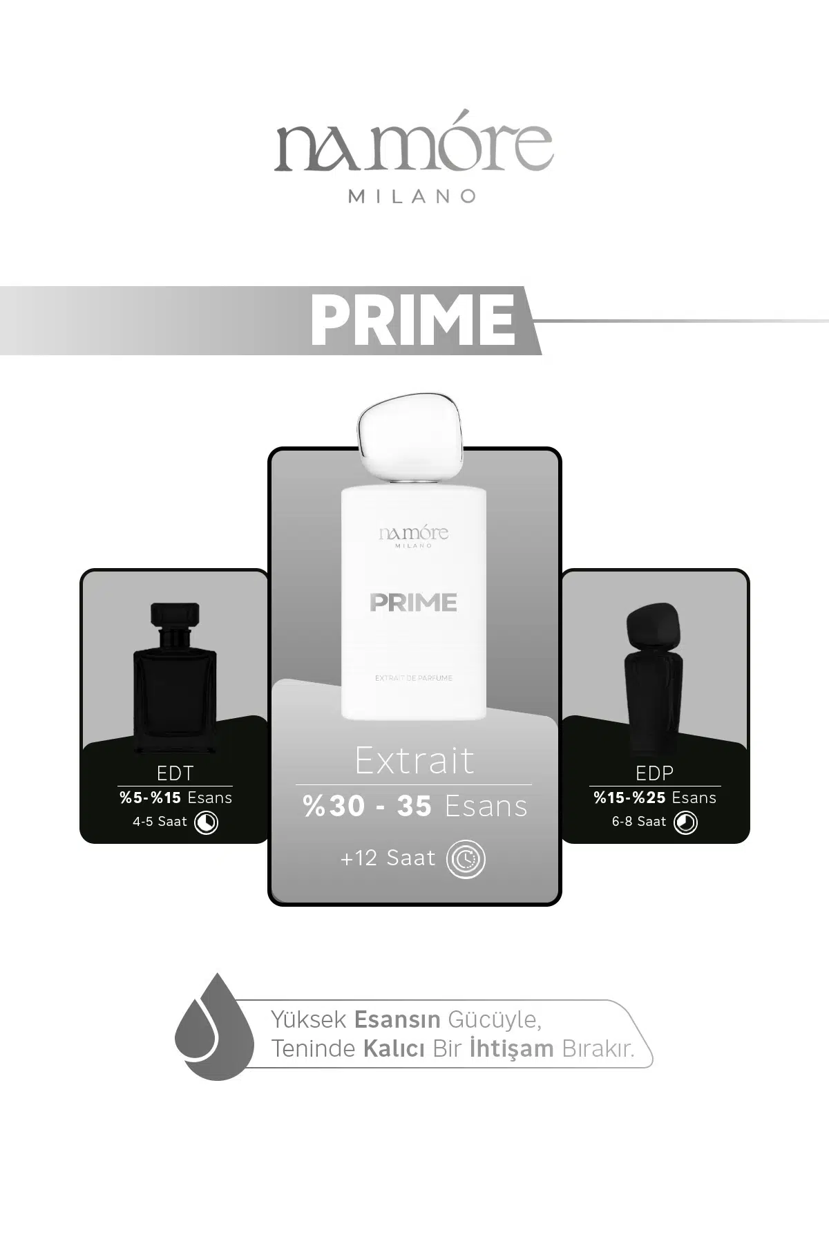 Prime Extrait; pembe biberin taze baharatlı açılışı, yaseminin zarif çiçek kokusu ve vanilyanın sıcak tatlılığı ile hem kadınların hem erkeklerin tarzını tamamlayan sofistike ve çok yönlü bir koku deneyimi sunar. 50 ml’lik kompakt boyutu sayesinde günlük hayattan özel anlara kadar her ortamda yanınızda.