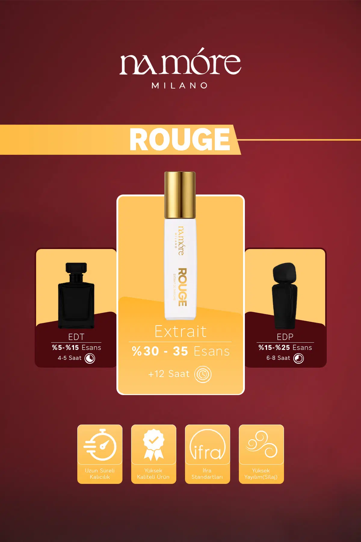 | Etiketler | Rouge Extrait Yüksek Esans Kadın Kalıcı Parfüm 15 ml | Melek Otu, Ylang Ylang, Vanilya |
