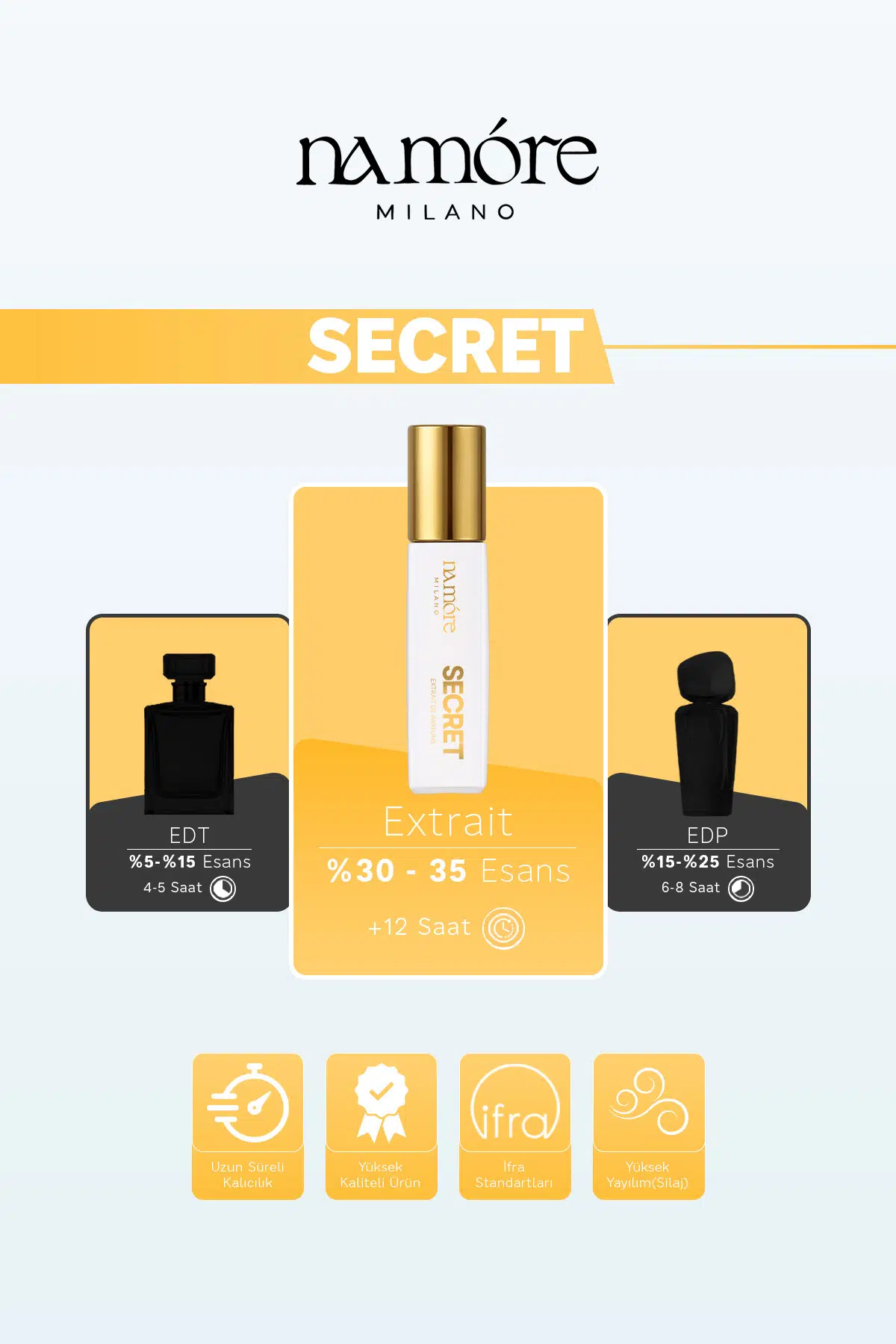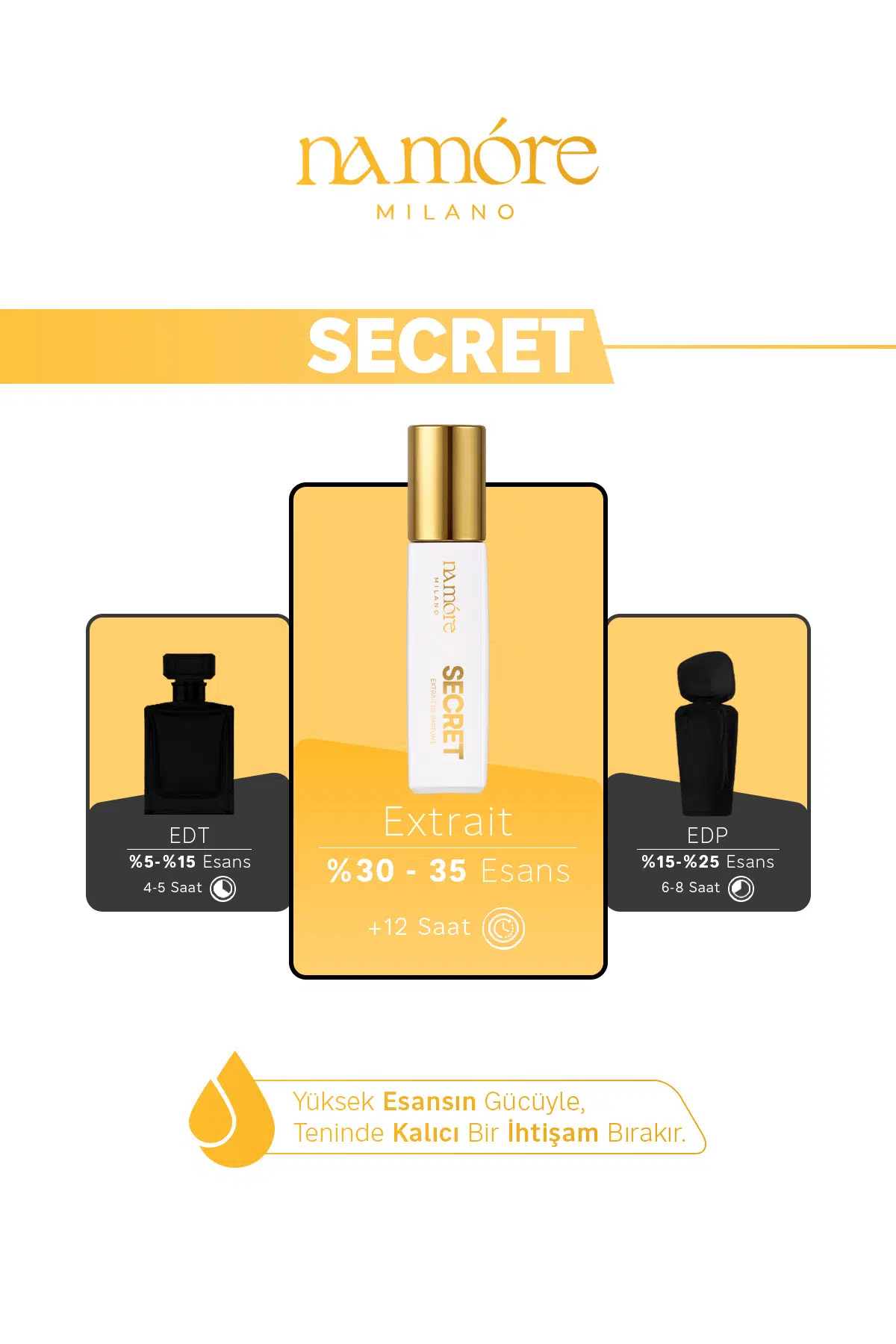 | Etiketler | Secret Extrait Yüksek Esans Kadın Kalıcı Parfüm 15 ml | Bergamot, Zambak Yasemin, Beyaz Misk |