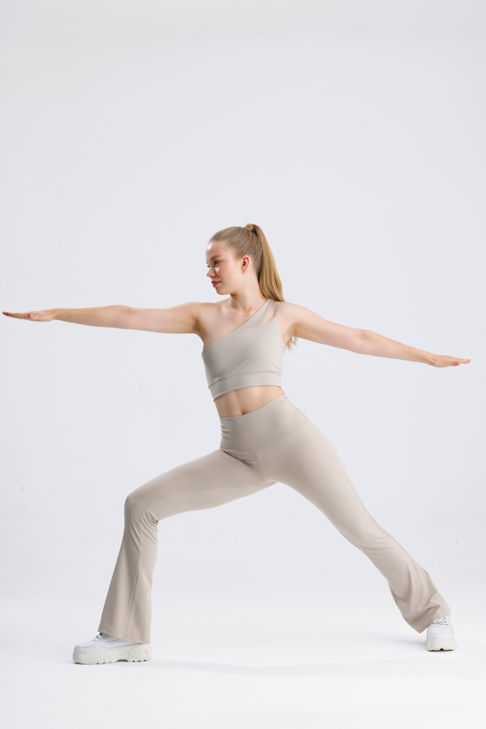 Çok yüksek belli Comfortlux flare spor pantolon. Dayanıklı ve nefes alabilir kumaş. Lazer kesim.